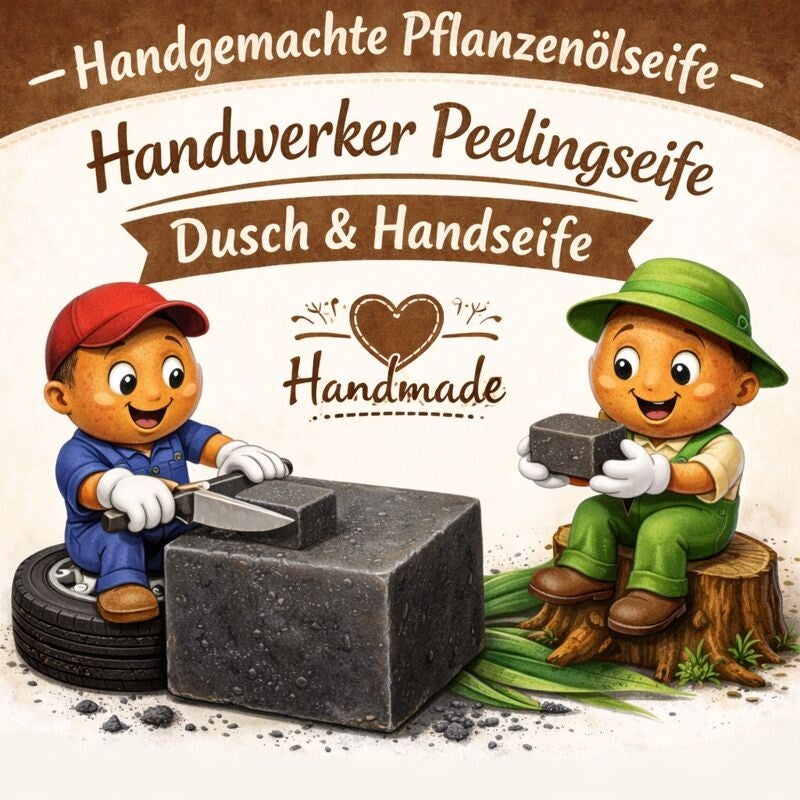 - Duschseife: Achtung, intensives Peeling, um Rötungen vorzubeugen sollte die Handwerkerseife nur mit wenig Druck verwendet werden.