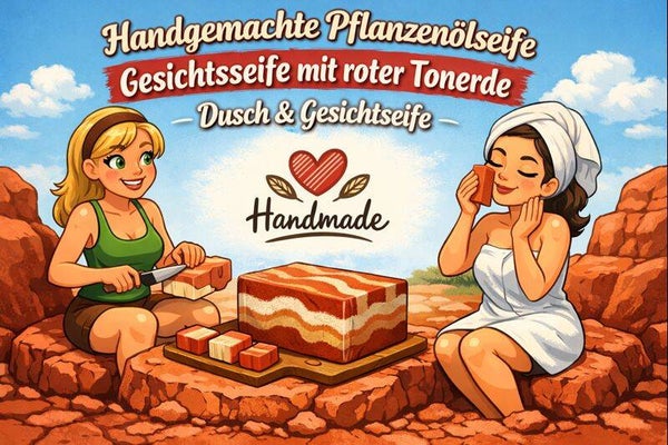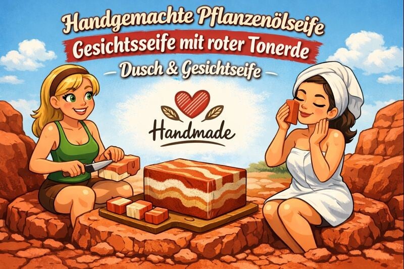 Erlebe sanfte Reinigung mit natürlicher Tonerde-Pluswirkung. Diese handgeschnittene Seife kombiniert das milde Reinigungsvermögen von Olivenöl mit roter Tonerde, die besonders bei unreiner Haut unterstützend wirken kann. Ideal als Gesichtspflege, aber auch als Dusch- und Handseife – sanft zur Haut und wohltuend zur Hautoberfläche.