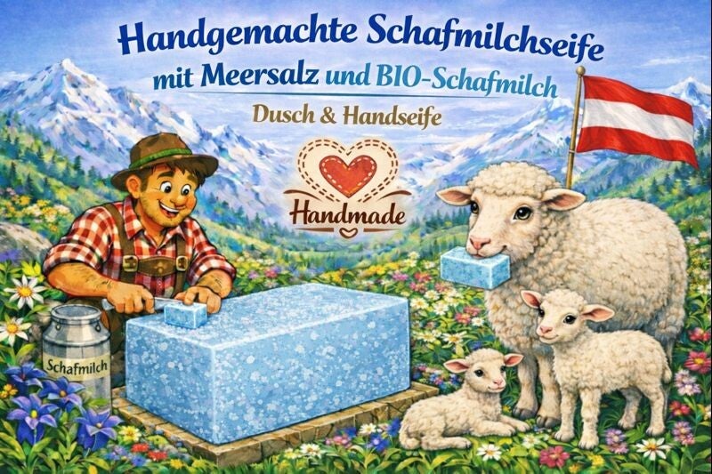 Lassen Sie Ihre Haut natürlich profitieren – mit unserer handgeschöpften Schafmilchseife mit Meersalz aus Österreich.